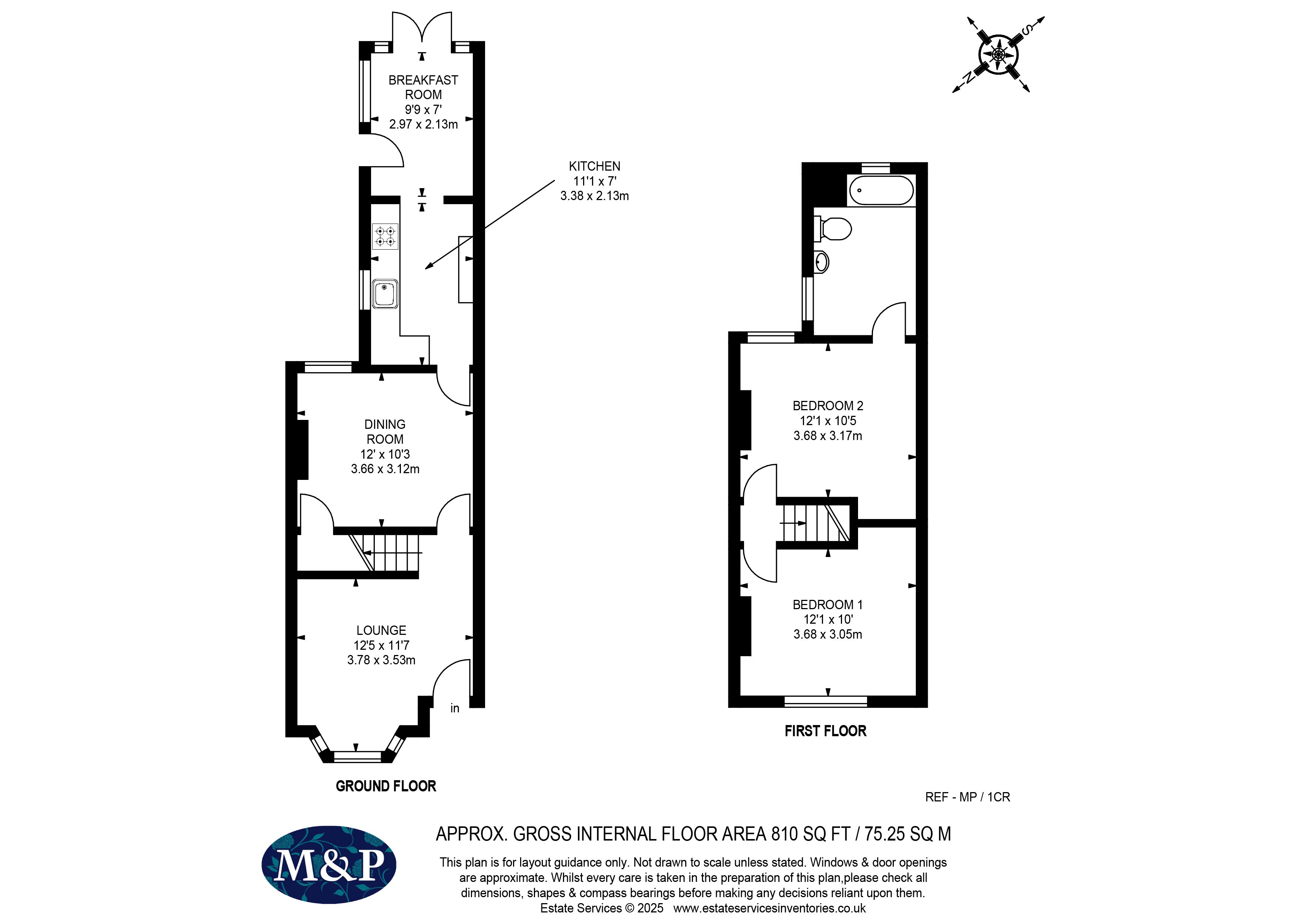 Bedroom 1 12’1 x 10’5 (3.68m x 3.05m)